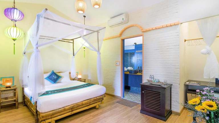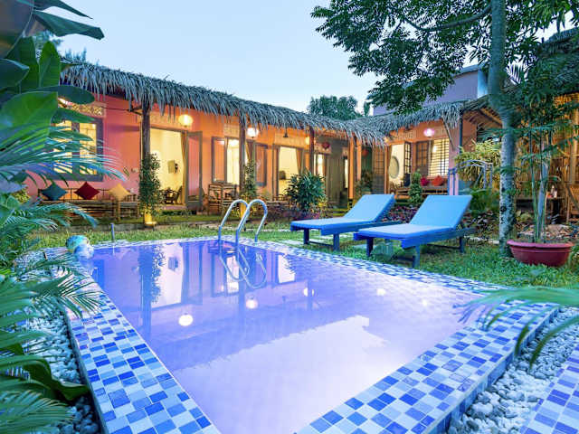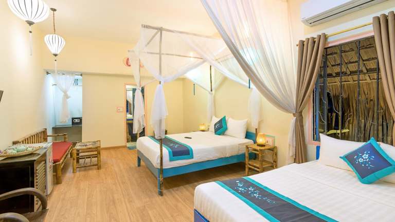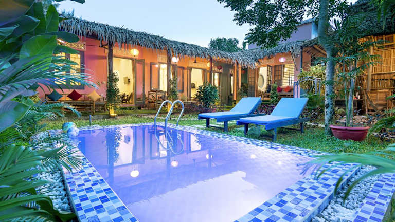 Neben dem Strand bietet das An Bang Beach Happy Village einen Außenpool, in dem Sie sich erfrischen und entspannen können. Genießen Sie die Sonne auf der Terrasse und nutzen Sie die kostenfreien Privatparkplätze, um die Umgebung zu erkunden.