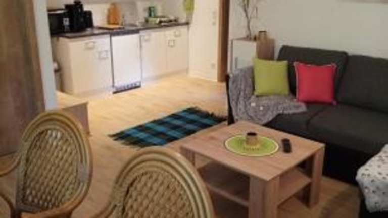 Die Ferienwohnung verfügt über ein Schlafzimmer, ein Wohnzimmer, einen Flachbild-TV und eine gut ausgestattete Küche mit Kühlschrank und Ofen. Zudem gibt es ein Badezimmer mit Dusche. Zur Ausstattung gehören auch Gartenmöbel und eine Terrasse mit Blick auf den Garten. Handtücher und Bettwäsche werden gestellt.