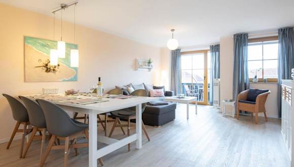 Die Ferienwohnung bietet zwei Schlafzimmer, ein Wohnzimmer sowie eine gut ausgestattete Küche mit Kühlschrank und Geschirrspüler. Zur Ausstattung gehören auch ein TV, eine Spielekonsole und ein CD-Player.