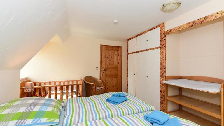 Die Ferienwohnung ist eingerichtet mit 2 Schlafzimmern, einem Flachbild-TV mit Satellitenkanälen und einer voll ausgestatteten Küchenzeile. Diese beinhaltet einen Kühlschrank, einen Geschirrspüler, eine Waschmaschine, einen Ofen und eine Mikrowelle.
