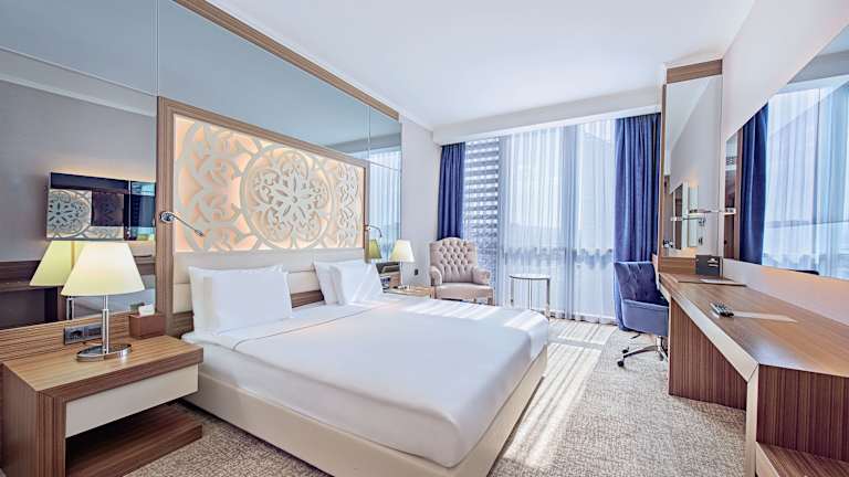 Die klimatisierten Zimmer sind gemütlich eingerichtet und mit Teppichböden ausgestattet. Sie verfügen über ein Doppelbett, ein Queensize-Bett, ein Kingsize-Bett oder ein Sofabett. Zur Standardausstattung gehören ein Safe, eine Minibar, ein Schreibtisch und eine Tee-/Kaffeemaschine. Die Zimmer sind mit Telefon, TV-Gerät sowie kostenlosem Wifi ausgestattet. Das Badezimmer ist mit einer Dusche und einer Badewanne, einem Haartrockner und Bademänteln ausgestattet. Auch rollstuhlgerechte Zimmer stehen zur Verfügung.