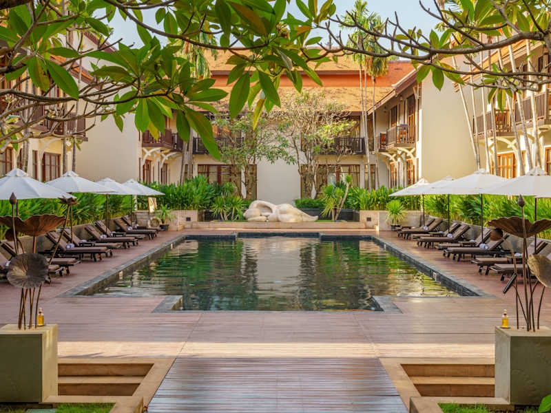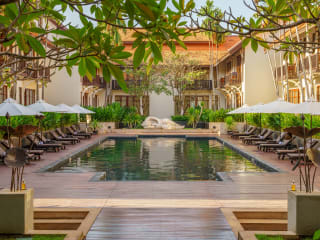 Die malerische kambodschanische Stadt Siem Reap ist das Tor zum UNESCO Weltkulturerbe, dem atemberaubenden Archäologischen Park von Angkor, der die Ruinen des alten Khmer-Reiches und das achte Weltwunder, Angkor Wat, beherbergt. Das Anantara Angkor Resort & Spa liegt nur wenige Minuten von diesem legendären Tempel entfernt. Das Boutique-Hotel mit seinen exklusiven Zimmern und Suiten mit Blick auf den herrlichen Innenhof und den Pool, der von den königlichen Bädern aus dem Khmer-Imperium inspiriert wurde, gleicht einer alten Khmer-Villa. Werfen Sie einen Blick hinter die touristischen Kulissen und entdecken Sie die kulturellen Schätze Kambodschas. Erkunden Sie die pulsierenden Märkte auf einer privaten Tour mit unserem Streetwise Guru. Entdecken Sie in Siem Reap die uralten lokalen Traditionen und die Einflüsse aus der französischen Kolonialzeit. Tauchen Sie gemeinsam mit Ihrem ortskundigen Reiseleiter in die Legenden von Angkor Wat ein, oder genießen Sie ein entspanntes Picknick in der historischen Anlage von Angkor Thom. Alternativ können Sie sich auf eine Reise der Sinne begeben und sich mit Spa-Arrangements nach Khmer-Tradition, kulinarischen Erlebnissen und Kochkursen in der luxuriösen Umgebung unseres Resorts verwöhnen lassen.