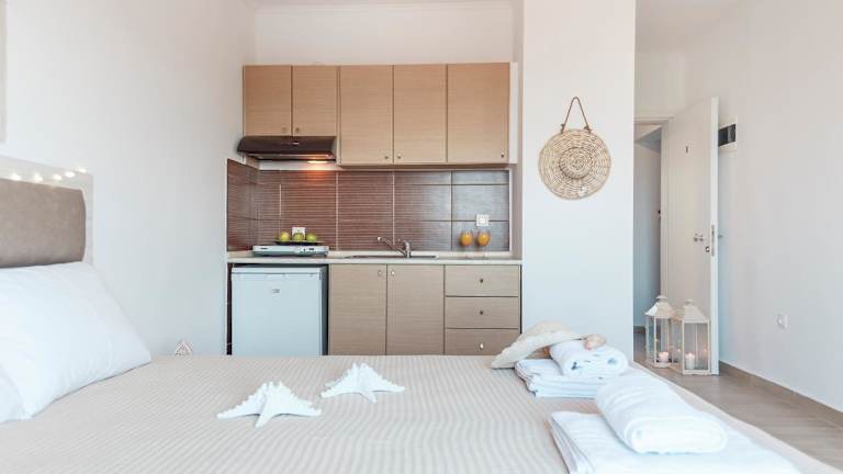 Die klimatisierten Wohneinheiten sind mit einem Balkon, einem eigenen Badezimmer, einem Flachbild-TV und einem Kleiderschrank ausgestattet. Alle Wohneinheiten verfügen über eine Küchenzeile mit Kühlschrank, Herdplatte und Wasserkocher. Einige bieten zudem einen herrlichen Meerblick.