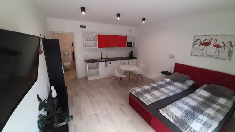 Die Wohneinheiten sind mit einer voll ausgestatteten Küche samt Esstisch, einem Flachbild-TV mit Satellitenkanälen, einem eigenen Badezimmer mit Dusche und Haartrockner sowie Kühlschrank, Mikrowelle, Herdplatte, Kaffeemaschine und Wasserkocher ausgestattet.