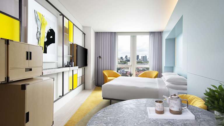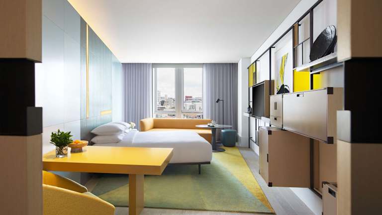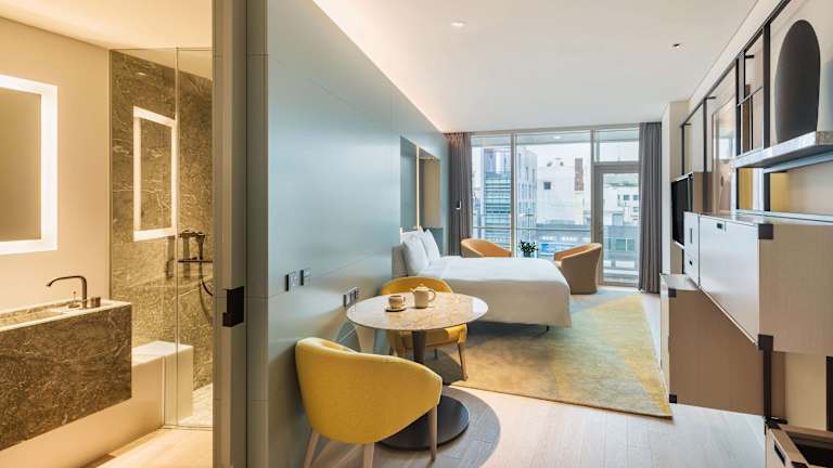 Die Zimmer im Andaz Seoul Gangnam sind modern ausgestattet und bieten Annehmlichkeiten wie Klimaanlage, Flachbild-TV, Safe, Kühlschrank sowie ein eigenes Badezimmer mit Bidet und kostenlosen Pflegeprodukten. Es gibt auch rollstuhlgerechte Zimmer, die mit einem barrierefreien Badezimmer ausgestattet sind. WLAN ist in allen Zimmern kostenlos verfügbar.
