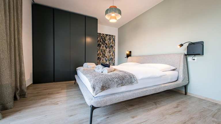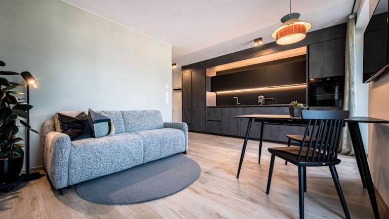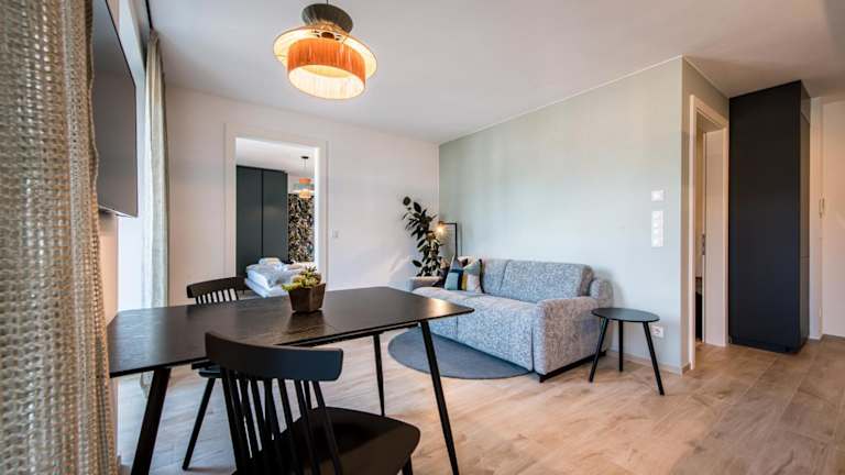 Die Ferienwohnung umfasst 1 Schlafzimmer und ein Wohnzimmer. Sie ist ausgestattet mit einem Flachbild-TV, einer gut ausgestatteten Küche mit Kühlschrank und Geschirrspüler sowie einem Badezimmer mit Dusche. Handtücher und Bettwäsche werden bereitgestellt.