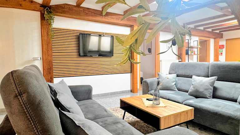 ANDRISS - Travel & Work - 5 BR - Kitchen - Parking bietet eine ideale Lösung für längere Aufenthalte und Arbeitsferien. Diese Ferienwohnung überzeugt mit einer heimeligen Atmosphäre und ist mit fünf Schlafzimmern sowie einer voll ausgestatteten Küche ausgestattet. Die Terrasse lädt zu entspannten Stunden im Freien ein.