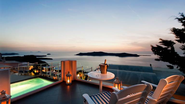 Das Andromeda Villas & Spa Resort in Imerovigli ist ein elegantes Hotel, das sich 300 m über der atemberaubenden Caldera befindet. Hier erwartet Sie ein Pool mit Blick auf die Caldera, Whirlpools, Sonnenterrassen mit kostenlosen Liegestühlen und Sonnenschirmen sowie traditionell eingerichtete Zimmer und Suiten mit modernen Annehmlichkeiten. Das Resort verfügt über verschiedene gastronomische Einrichtungen, darunter ein Frühstücksraum, ein Restaurant, ein Restaurant zum Abendessen, ein Café im Freien und eine Poolbar. Genießen Sie die entspannte Atmosphäre und die atemberaubende Aussicht auf die Caldera und die Ägäis. Die Lage des Hotels ist ideal, um die Insel zu erkunden und in der Nähe gibt es viele Restaurants, Bars und Geschäfte.