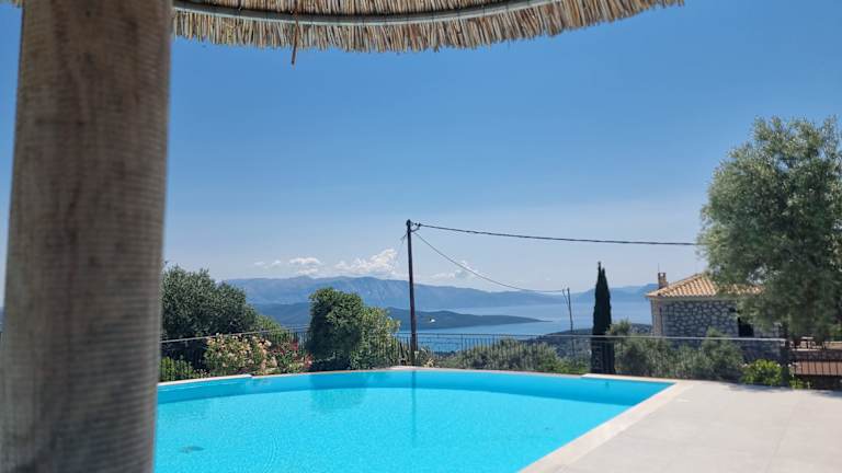 Das Hotel befindet sich in Spanochori, etwa 6 km von der Stadt Lefkada entfernt. Es liegt in einer ruhigen Umgebung und bietet eine atemberaubende Aussicht auf das Ionische Meer. In der Nähe befinden sich verschiedene Küstenstädte wie Vassiliki, Syvota und Agios Nikitas, die Möglichkeit zur Erkundung der lokalen Gastronomie und Unterhaltung bieten. Die Anreise mit dem Auto wird empfohlen und der Gastgeber kann bei der Anmietung behilflich sein.