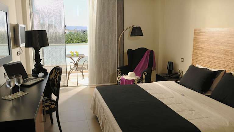 Die Zimmer im Angela Suites Boutique Hotel bieten ein gemütliches Raumklima mit Klimaanlage und Heizung. Alle Zimmer sind mit einem Balkon oder einer Terrasse ausgestattet. Zur Verfügung stehen Doppelbetten, Sofabetten, ein Kühlschrank, eine Minibar und ein Schreibtisch. Auch ein Telefon mit Direktwahl, ein TV-Gerät und Wifi sind vorhanden. Die Badezimmer verfügen über eine Dusche, eine Badewanne und eine Whirlwanne, ergänzt durch Bademäntel und Haartrockner.