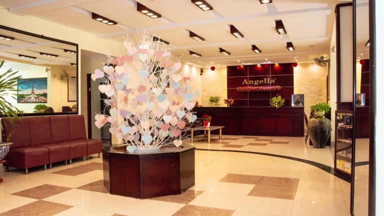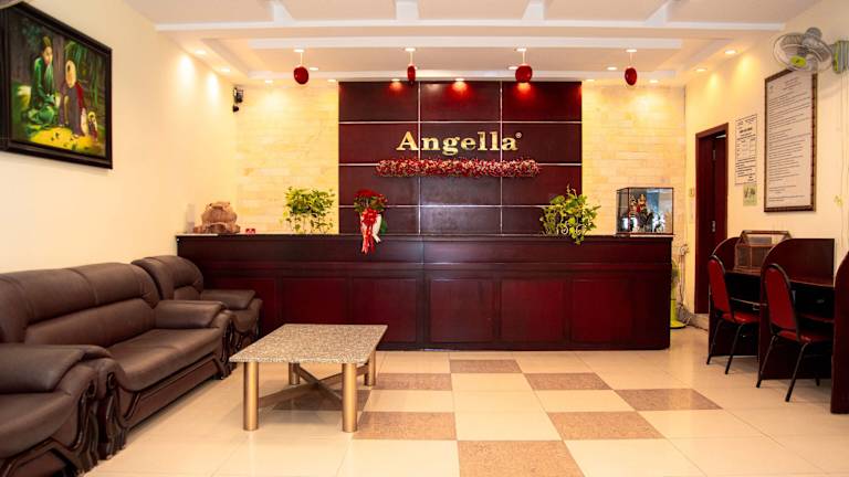 Das Hotel Angella besteht aus einem 8-stöckigen Haupthaus und einem 3-stöckigen Nebengebäude, in denen insgesamt 60 Doppelzimmer zur Verfügung stehen. Die Gäste werden am Empfang von mehrsprachigem Personal herzlich empfangen. Zu den Einrichtungen gehören eine 24-Stunden-Rezeption, ein Aufzug, eine Garderobe, eine Gepäckaufbewahrung, ein Safe und eine Wechselstube. WLAN ist im Hotel verfügbar. Des Weiteren werden verschiedene Dienstleistungen angeboten, wie ein Transferservice, Zimmerservice und ein Wäscheservice. In der Gartenanlage können die Gäste entspannen.