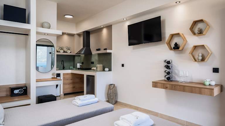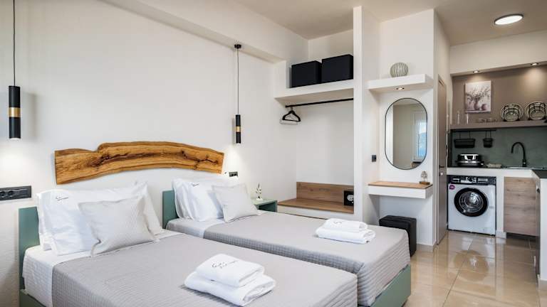 Die Studios sind mit Klimaanlage, einem Flachbild-TV und einem eigenen Badezimmer mit Dusche und Haartrockner ausgestattet. Jedes Studio bietet zusätzlich eine Terrasse und kostenloses WLAN. Die Mindestalter für den Check-in beträgt 18 Jahre und für Gäste 2 Jahre, Haustiere sind nicht gestattet.