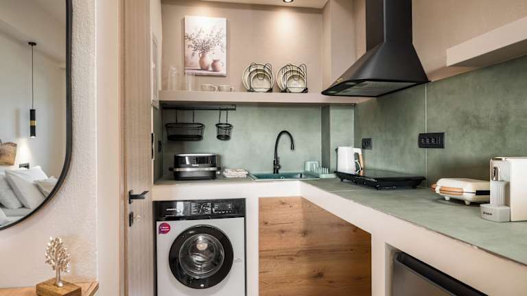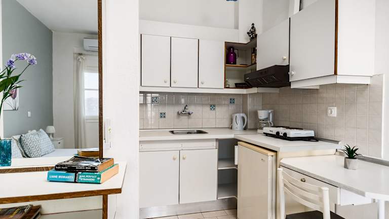 Die Studios verfügen über eine voll ausgestattete Küchenzeile, die eine Herdplatte, einen Kühlschrank, einen Toaster sowie eine Kaffeemaschine und einen Wasserkocher beinhaltet. Selbstverpflegung ist somit möglich.