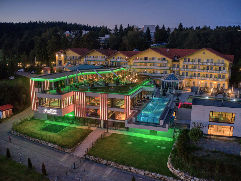 Das Angerhof****s Sport- und Wellnesshotel in Sankt Englmar liegt in einer der beliebtesten Urlaubsregionen Bayerns, im Naturpark Bayerischer Wald. Sein neues WaldSpa mit unendlich viel Platz, Ideenreichtum und Raffinesse, um Körper, Geist und Seele zu verwöhnen, erfüllt Genussmomente mit der Kraft des Bayerischen Waldes. Da kann die Seele herrlich baumeln. Da ist Zeit für die Liebsten. Da wird Me-Time großgeschrieben. Wer im Angerhof in den Sky-Infinitypool eintaucht, kann seinen Blick nicht mehr von der atemberaubenden Kulisse über das Donautal bis hin zur Alpenkette lösen. Die große Sky-Terrasse und eine Panorama-Eventsauna zum Staunen, ein doppelstöckiges Saunahaus, Coolness in der Schneekabine, wohltuende WaldSpa-Ruheräume, ein traumhafter, großer Naturpool und noch vieles mehr lassen den Begriff „High-End-Spa“ zweifellos zu. Und tschüss To Do-Liste Sich selbst Gutes zu gönnen, ist nie verkehrt, sich ein paar Tage der Romantik zu widmen, noch viel weniger. Ob LichterWald, KräuterDom oder Auqadrale – die Schätze des Bayerischen Waldes übernehmen in dem neuen WaldSpa die Hauptrolle auf der Wellnessbühne. Sich einlassen, staunen und spüren sind erwünscht. Die wohltuende Wirkung kann nur jeder selbst erleben. Ein „Ausflug“ in den LichterWald kitzelt die Sinne. Auf der wohlig warmen 4-Senses Lounge Liege dringen entspannende Klänge des Waldes an das Ohr. Leichte Vibrationen verstärken die Wahrnehmung, während entsprechende Lichtstimmungen das Gemüt erhellen. Der herrliche Duft des Waldes streift um die Nase, die Gedanken entfliehen dem Alltag und machen sich auf den Weg in den Wald. Im KräuterDom erfahren die Freunde von Dampfbädern neue Eindrücke. Sie nehmen gemütlich auf ergonomisch geformten Steinliegen Platz und lassen unterschiedliche Kräuterdüfte und den warmen, gesunden Dampf auf sich wirken. Wer dann noch in die Aquadrale kommt, der wird Ohren- und Augenzeuge des wohl ersten Poolkinos. Wenn rund um den 20-Meter-Indoor-Pool die Natur auf der Leinwand vorbeizieht und ein klassisches Konzert ertönt, dann wähnt sich so mancher im siebten Himmel. Mit privater Wohlfühlatmosphäre umgarnen die Beautyabteilung und der Wald Massage-Tempel ihre Besucher. Geschulte Hände verwöhnen mit edlen Cremes, wundervollen Masken und Ölen. Jeder ist im Angerhof zu seiner individuellen Lieblings-Wellnessreise eingeladen, zu Bädern und Kosmetik-Anwendungen mit Produkten ausgesuchter Top-Marken.