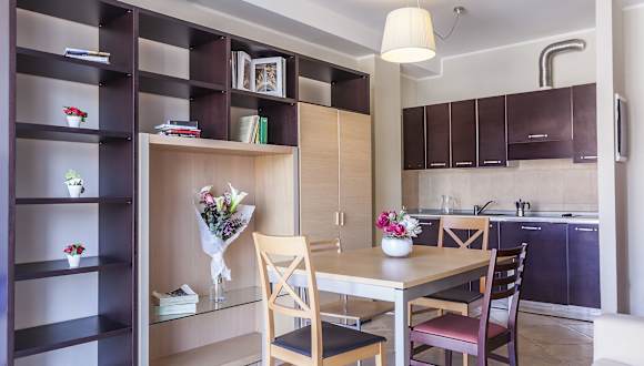 Die Apartments sind mit einem Flachbild-TV, einem Sofa und einem eigenen Bad mit Haartrockner sowie kostenfreien Pflegeprodukten ausgestattet. Eine Kochnische mit einem Essbereich, Kühlschrank, Herd und Backofen ist standardmässig vorhanden. Jedes Zimmer bietet einen Safe, eine Minibar und einen Schreibtisch. Die Badezimmer verfügen über eine Dusche und ein Bidet, und es gibt rollstuhlgerechte Zimmer mit barrierefreiem Bad.