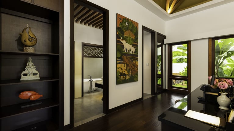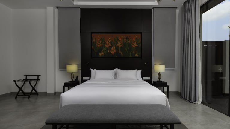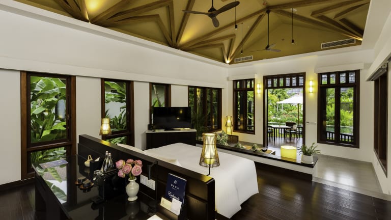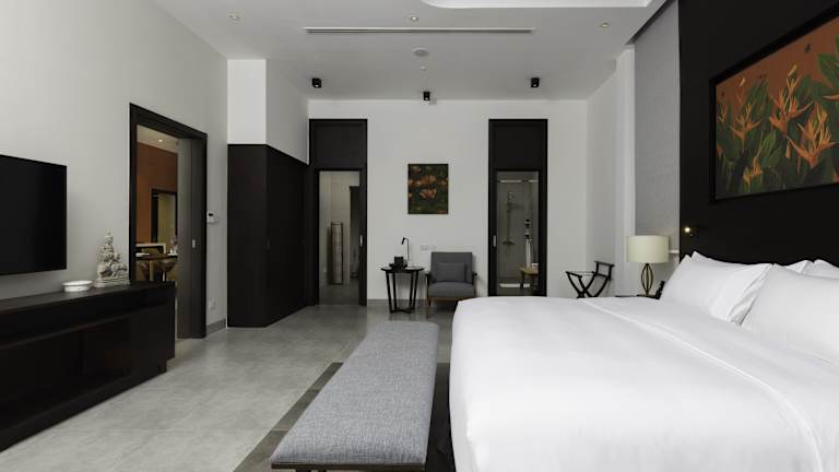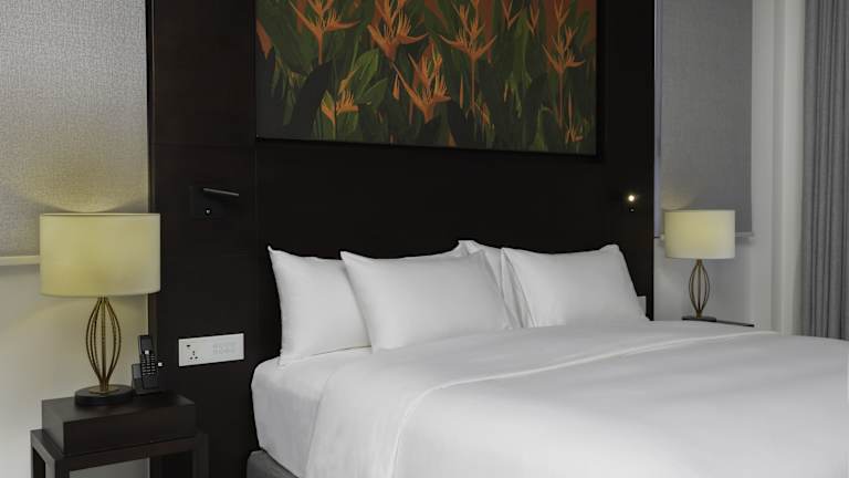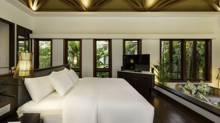 Die Zimmer sind klimatisiert und verfügen meist über einen Balkon mit Blick auf den Pool. Zur Ausstattung gehören ein Kingsizebett, ein Sofabett, ein Schreibtisch, eine Minibar und ein Kühlschrank. Die Badezimmer sind mit einer Dusche, einer Badewanne, einem Haartrockner sowie Bademänteln ausgestattet und bieten Kosmetikartikel und eine Auswahl an Handtüchern.