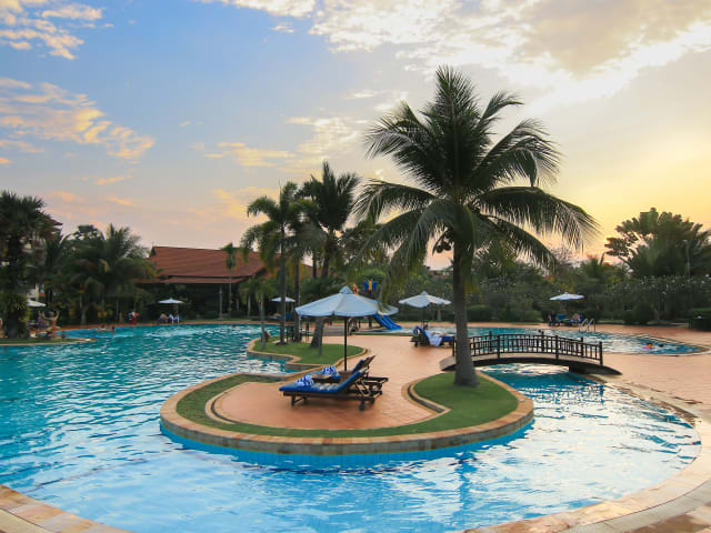Schalten Sie im Wellnessbereich mit Fitnesszentrum, Whirlpool und Dampfbad in den Erholungsmodus. Zusätzlich ist ein Freiluftpool verfügbar. Harmonie zwischen Körper, Geist und Seele versprechen die angebotenen Massagen und Körperbehandlungen. Vor Ort wird Golf, Billard, Bowling, Minigolf, Tennis oder Volleyball angeboten. Die Betreuung Ihrer Kinder nimmt Ihnen gerne das Team der Kinderbetreuung ab. In der Nähe der Unterkunft sind Möglichkeiten zum Radfahren vorhanden. Kainnora Spa: Der Spa-Bereich besteht aus 9 Behandlungsräumen und bietet eine große Anzahl traditioneller Khmer Massagen und westlicher, therapeutischer Massagen an.