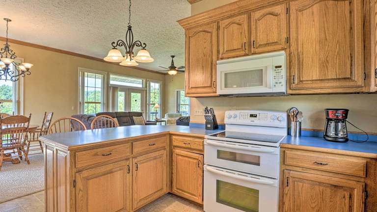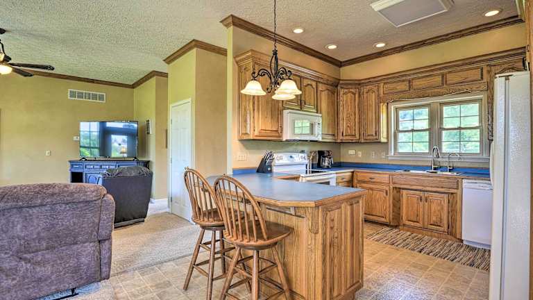 Anglers Ridge Waterfront Family Getaway! bietet klimatisierte Übernachtungsmöglichkeiten. Alle Gästezimmer besitzen einen Balkon und ermöglichen den Blick auf den Fluss. Die Unterkunft ist im Erdgeschoss gelegen und ist sowohl für Familien als auch für Gruppen geeignet.