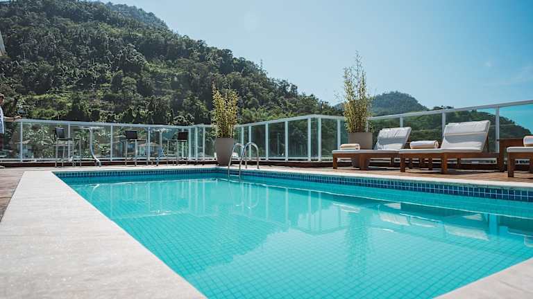 Das Angra Beach Hotel befindet sich in einer attraktiven Lage, nur 800 Meter vom Piratas Mall entfernt. Das Stadtzentrum von Angra dos Reis ist 3.5 Kilometer entfernt und die Busstation liegt 700 Meter vom Hotel. Eine paradiesische Strandlage auf der Gipoia Insel ist nur 6 Kilometer entfernt und bietet einen erstklassigen Restaurantservice vor Ort.