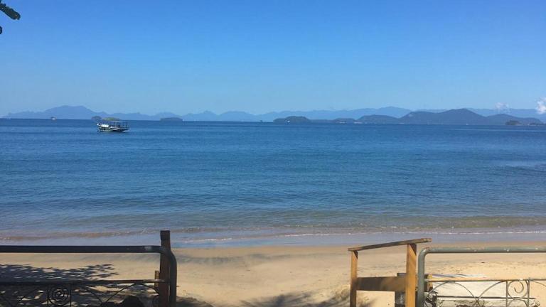 Das Angra dos Reis - Casa pé na areia na Praia de Fora in Ponta Leste bietet eine idyllische Lage direkt am Strand mit einer eigenen Terrasse und Grillmöglichkeiten. Die Unterkunft zeichnet sich durch einen eigenen Strandbereich aus und bietet Platz für Familien oder Gruppen.