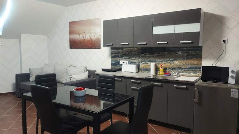 Anikó Szállás Baja bietet eine heimelige Atmosphäre und vielfältige Annehmlichkeiten. Die Unterkunft hat eine Nichtraucherpolitik und ist besonders für Familien geeignet. Die Wohneinheiten verfügen über eine voll ausgestattete Küchenzeile sowie moderne technische Einrichtungen wie einen Flachbild-TV und kostenloses WLAN.