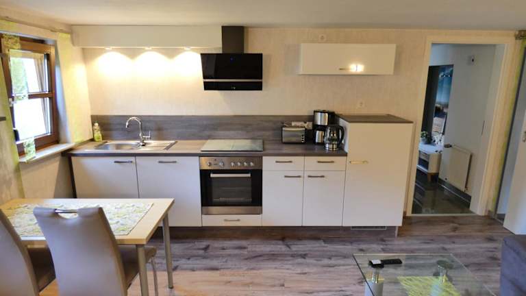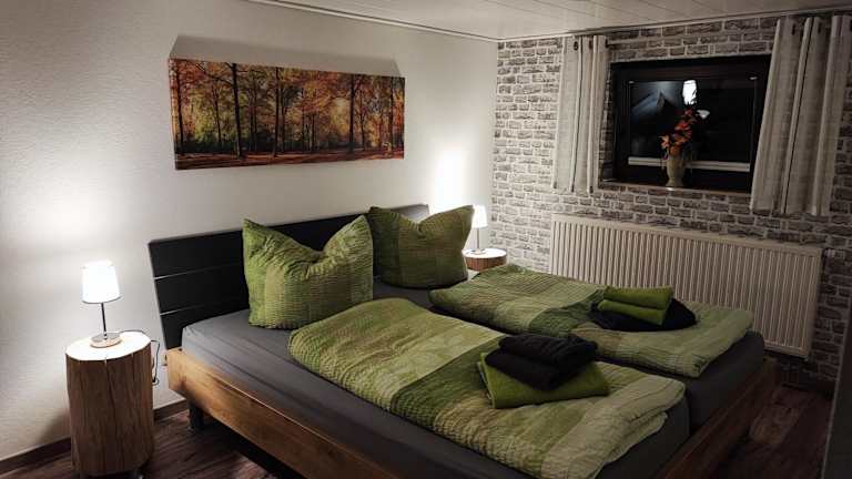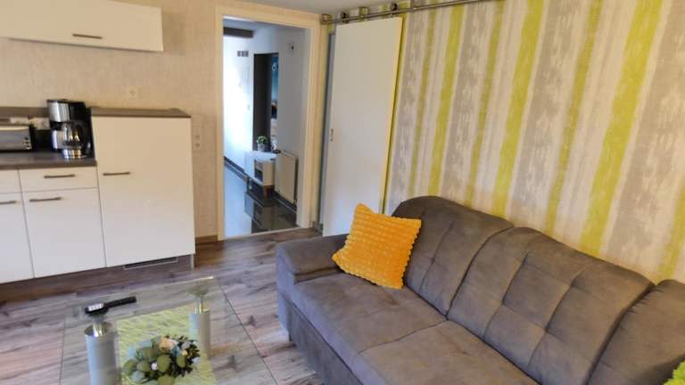 Die Ferienwohnung verfügt über ein Schlafzimmer, ein Wohnzimmer mit Flachbild-TV, eine voll ausgestattete Küchenzeile mit Kühlschrank und Geschirrspüler sowie ein Badezimmer mit Dusche. Handtücher und Bettwäsche werden bereitgestellt.