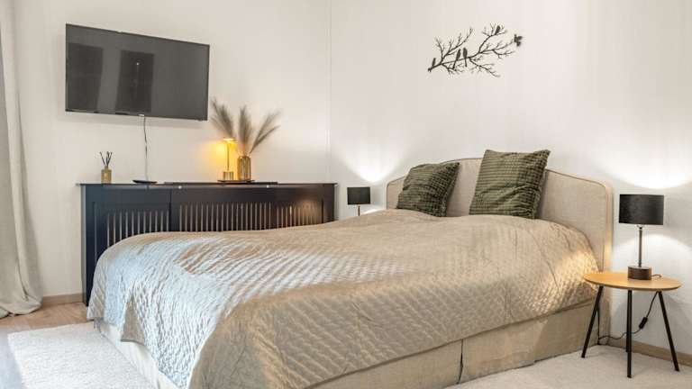 Die Ferienwohnung beinhaltet 1 Schlafzimmer, einen TV und eine voll ausgestattete Küche, die einen Kühlschrank, Ofen, Waschmaschine, Mikrowelle sowie Herdplatte offeriert. Handtücher und Bettwäsche werden bereitgestellt.