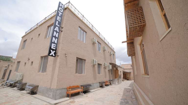 Die Unterkunft Annex Hotel Khiva bietet eine Terrasse und klimatisierte Zimmer mit kostenlosem Wifi. Die Rezeption ist rund um die Uhr besetzt, und es gibt einen Währungsumtausch für die Gäste. Zudem wird ein Zimmerservice angeboten, und die Unterkunft ist auf Nichtraucher ausgerichtet.