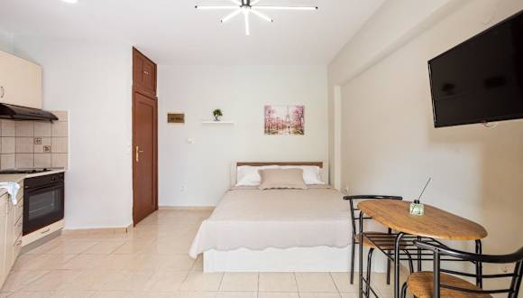 Die Anopolh front apartment bietet Übernachtungsmöglichkeiten in einem heimeligen Ambiente mit Annehmlichkeiten wie kostenlosem Wifi und einem Flachbild-TV. Die Unterkunft ist klimatisiert und bietet direkten Zugang zu einer Terrasse, ideal für entspannende Stunden.