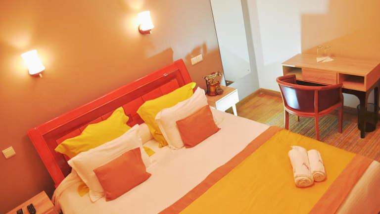 Die klimatisierten Zimmer im Anouk Hotel sind mit einem Schreibtisch, einem Safe, einem Flachbild-TV und einem eigenen Badezimmer mit Dusche ausgestattet. Zu den Annehmlichkeiten zählen auch Bettwäsche und Handtücher.