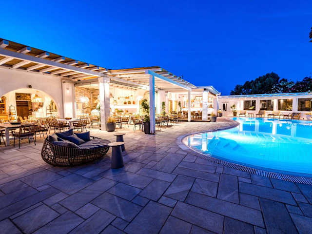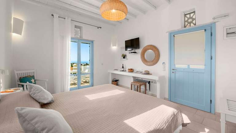 Das Anthea Hotel ist im traditionellen kykladischen Stil erbaut und bietet ein elegantes Ambiente mit einem Pool, einem traditionellen Restaurant und einem Spa-Bereich. Die Unterkunft verfügt über eine schattige Veranda, die einen Blick auf die Ägäis oder die Berge von Tinos ermöglicht. Ein kostenloser Transfer vom und zum Hafen wird angeboten.