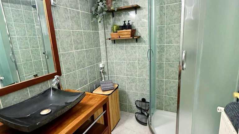 Die Ferienwohnung bietet Platz für bis zu 6 Personen und umfasst 2 Schlafzimmer, ein Wohnzimmer und ein Badezimmer mit Dusche sowie kostenlosen Pflegeprodukten. Handtücher und Bettwäsche werden zur Verfügung gestellt.