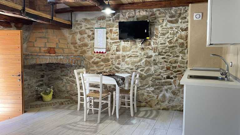 Antica Dimora Fora e' Muros AMMENTOS POSADA bietet eine Ferienwohnung mit kostenlosen WLAN-Zugang und Klimaanlage. Die Unterkunft ist mit einem Schlafzimmer, einem Flachbild-TV und einer Küche ausgestattet.