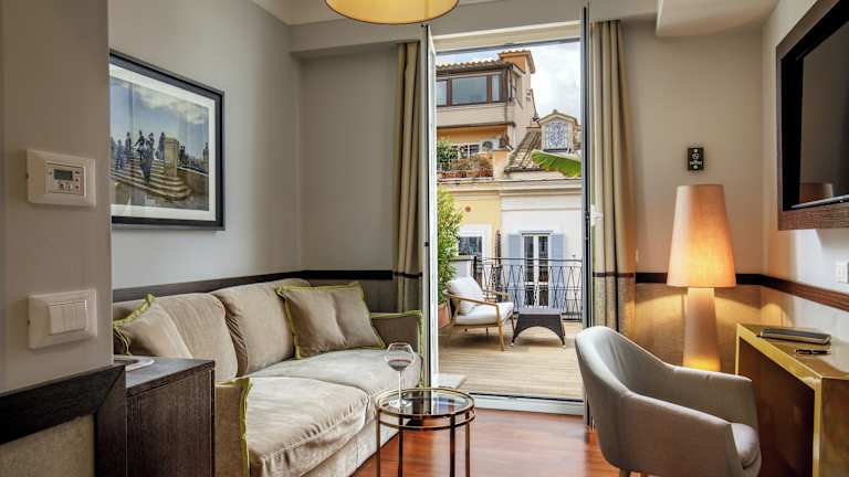 Die Zimmer des Hotels sind mit Klimaanlage, Heizung und Ventilator ausgestattet. Die Mehrheit der Zimmer bietet eine Terrasse zur Entspannung. Sie verfügen über ein Doppelbett, ein Sofabett, einen Safe, eine Minibar, einen Schreibtisch sowie einen Minikühlschrank und eine Tee-/Kaffeemaschine. Zudem sind ein Telefon, ein TV-Gerät und Wifi in jedem Zimmer vorhanden. Die Badezimmer sind mit einer Dusche und einer Badewanne ausgestattet und bieten Kosmetikartikel sowie eine Auswahl an Handtüchern.