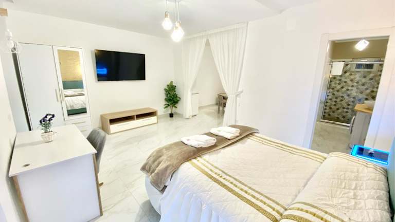 Die Ferienwohnung verfügt über ein Schlafzimmer, ein heimeliges Wohnzimmer und eine voll ausgestattete Küche mit Kühlschrank und Kaffeemaschine. Zudem ist ein Badezimmer mit Bidet und Dusche vorhanden. Ein Flachbild-TV sorgt für Unterhaltung. Die Zimmer sind schallisoliert und bieten Klimaanlage sowie allergikerfreundliche Optionen. Bettwäsche und Handtücher werden gemäss den Richtlinien der örtlichen Behörden gewaschen.