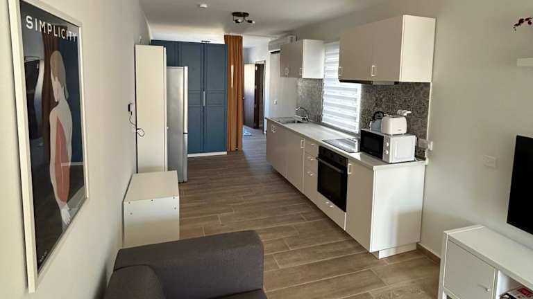 Die Zimmer sind klimatisiert und verfügen über eine voll ausgestattete Küche mit Essbereich, Flachbild-TV und eigenem Badezimmer. Zur Ausstattung gehören auch ein Kühlschrank, Ofen, Mikrowelle, Kaffeemaschine und Wasserkocher. Pflegeprodukte und Haartrockner sind im Badezimmer vorhanden.