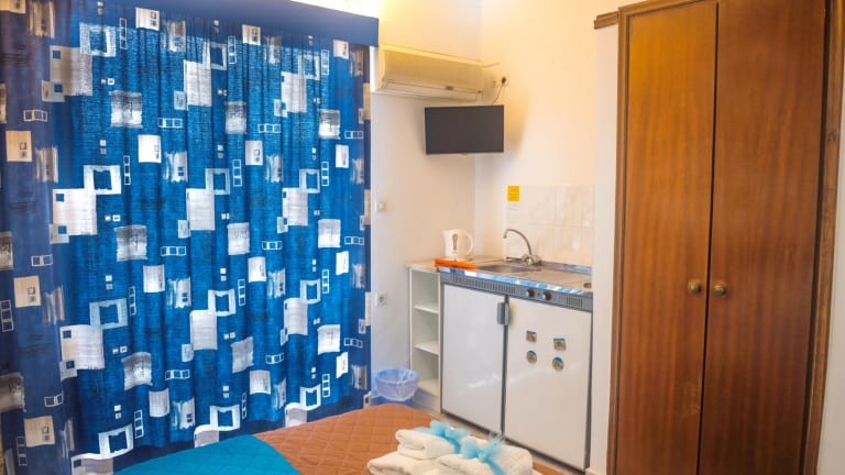 Die Zimmer sind mit Klimaanlage, Balkon oder Terrasse, Doppelbett, Küchenzeile mit Kühlschrank, Telefon, TV-Gerät und kostenlosem Wifi ausgestattet. Die Badezimmer verfügen über Dusche, Badewanne und Haartrockner. Familienzimmer sind ebenfalls verfügbar.
