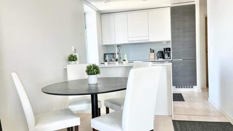 Die Ferienwohnung ist ausgestattet mit einem Schlafzimmer, einem Badezimmer, Bettwäsche und Handtüchern. Zu den Annehmlichkeiten zählen ein Flachbild-TV mit Kabelkanälen, ein Essbereich und eine voll ausgestattete Küche. Eine Terrasse mit Stadtblick sorgt für eine angenehme Atmosphäre.