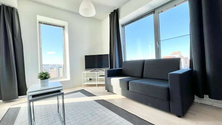 AP City Suite - City View over Tampere und Best Location bietet Übernachtungsmöglichkeiten mit kostenlosem Wifi, einer Klimaanlage, einem Restaurant und einer Bar. Die Unterkunft hat einen direkten Blick auf die Stadt und ist privat geführt, wobei für den Check-in ein Mindestalter von 21 Jahren erforderlich ist. Haustiere sind nicht gestattet und die Unterkunft erfüllt strenge Sicherheitsrichtlinien.