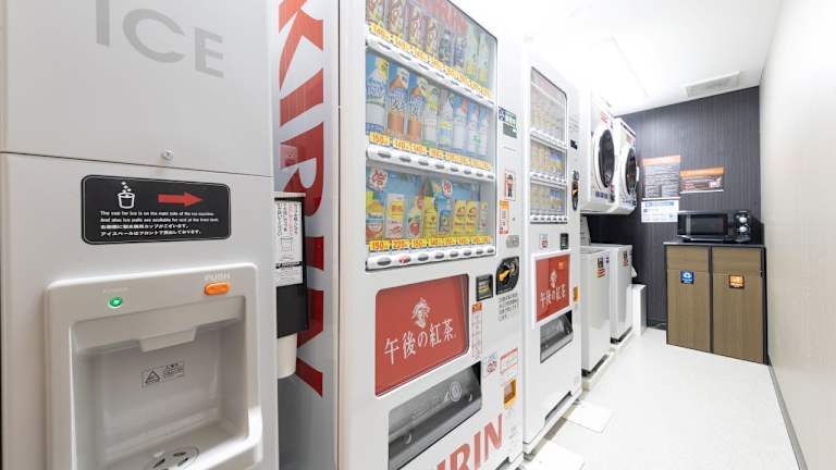 Im gemütlichen Speisesaal des Café Figaro wird ein herzhaftes japanisches Frühstück serviert. Zudem stehen Getränke- und Snackautomaten zur Verfügung.