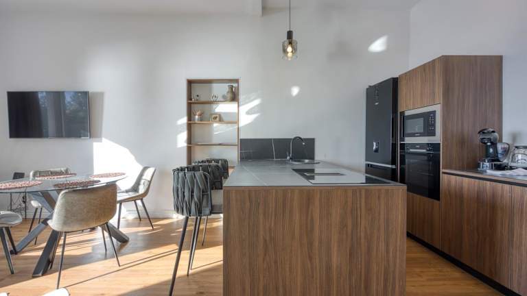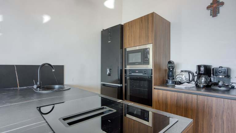 Die Ferienwohnung umfasst zwei Schlafzimmer und zwei Badezimmer. Zur Ausstattung gehören Bettwäsche, Handtücher, ein Flachbild-TV mit Kabelkanälen und eine Terrasse mit Stadtblick. Zudem sind die Zimmer schallisoliert und bieten angenehme Temperaturen durch Klimaanlage. Die Unterkunft bietet auch sichere Schließfächer.