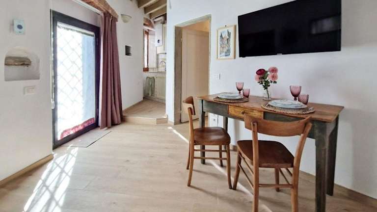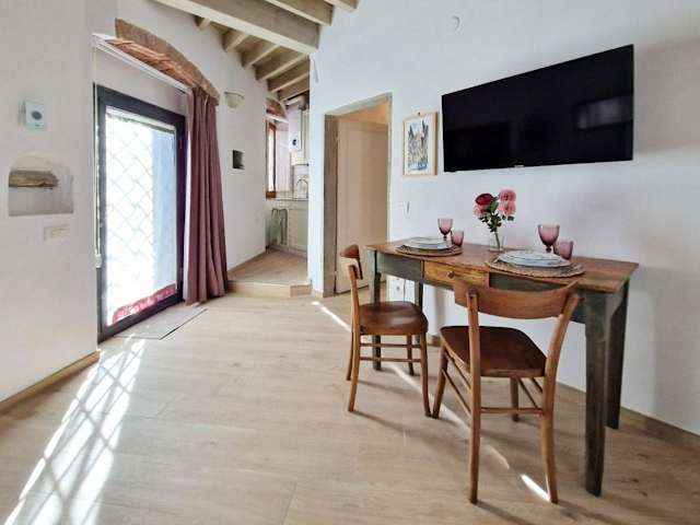 Die Ferienwohnung ist klimatisiert und besteht aus einem Schlafzimmer, einem Wohnzimmer sowie einer voll ausgestatteten Küche mit Kühlschrank und Kaffeemaschine. Das Badezimmer verfügt über ein Bidet und eine Dusche. Handtücher und Bettwäsche werden zur Verfügung gestellt.