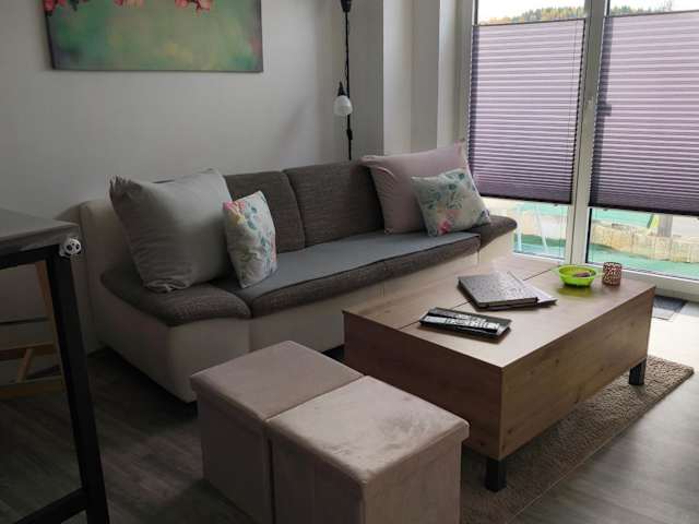 Die Ferienwohnung umfasst 2 Schlafzimmer, ein Wohnzimmer, einen Flachbild-TV, eine gut ausgestattete Küchenzeile mit einem Kühlschrank und einem Ofen sowie 1 Badezimmer mit einer Dusche. Handtücher und Bettwäsche werden zur Verfügung gestellt.