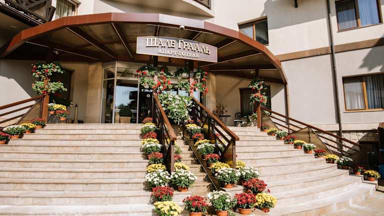 Das Apart-Hotel Chale Graal befindet sich in einer ruhigen Lage, nur 100 m von einem Wald entfernt. Der schöne Park rund um den Komplex lädt zu gemütlichen Spaziergängen ein. Das Stadtzentrum von Truskawez ist in nur 10 Minuten zu Fuss erreichbar. Die Autobahn T1402 verläuft in 1 km Entfernung.