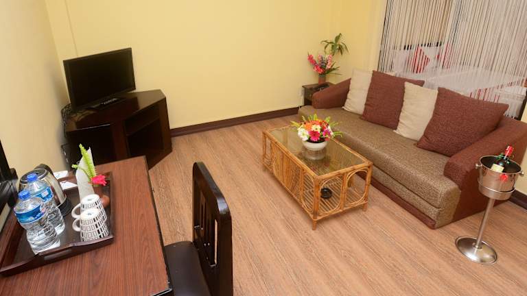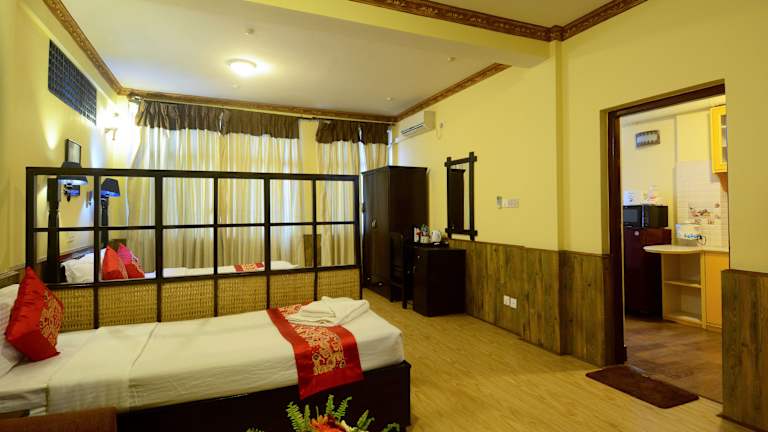 Die Zimmer im Dream Nepal Hotel and Apartment sind gemütlich und mit Holzböden ausgestattet. Sie verfügen über einen Ventilator oder Klimaanlage, einen Flachbild-Kabel-TV, Kaffee- und Teezubehör und ein eigenes Bad mit einer Warm-/Kaltwasserdusche. Einige Zimmer bieten auch eine Badewanne, um sich nach einem langen Tag zu entspannen.