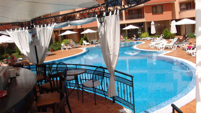 Das Apart Hotel Efir bietet gemütliche Übernachtungsmöglichkeiten in einer zentralen Lage in Sonnenstrand. Die Unterkunft ist eine Nichtraucherunterkunft, die Bequemlichkeiten wie einen Garten mit einem saisonalen Aussenpool umfasst. Es gibt auch eine Sonnenterrasse und eine Terrasse, auf der Gäste entspannen können. Die Unterkunft akzeptiert keine Junggesellenabschiede oder ähnliche Feiern und ermutigt Gäste, ihre voraussichtliche Ankunftszeit im Voraus mitzuteilen.