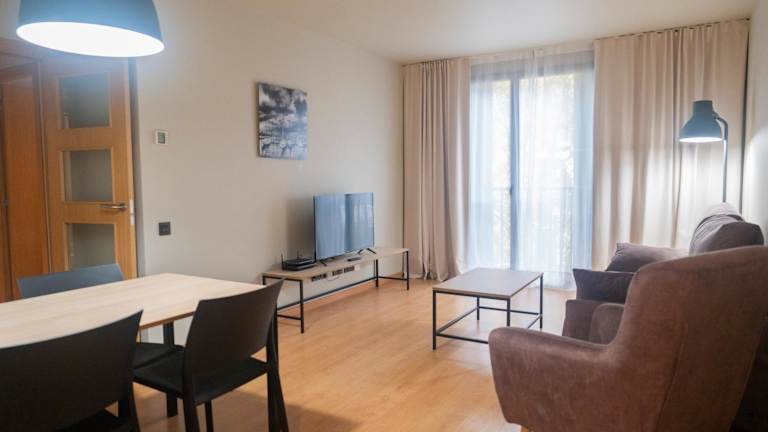 Die modernen Apartments sind klimatisiert und verfügen über eine voll ausgestattete Küche mit Geschirrspüler, Waschmaschine und Trockner. Das Wohnzimmer beinhaltet einen 40-Zoll-Flachbild-TV, einen Esstisch und ein Schlafsofa. Im Badezimmer befinden sich eine Badewanne und ein Haartrockner. Bettwäsche und Handtücher werden bereitgestellt.