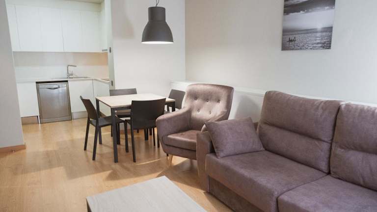 In der Ausstattung der Apartments ist eine Küchenzeile mit Backofen und Mikrowelle vorhanden, die den Gästen die Zubereitung eigener Mahlzeiten ermöglicht. Für Verpflegungsmöglichkeiten in der Umgebung sind zahlreiche Bars und Restaurants im Stadtbezirk Gracia angesiedelt.