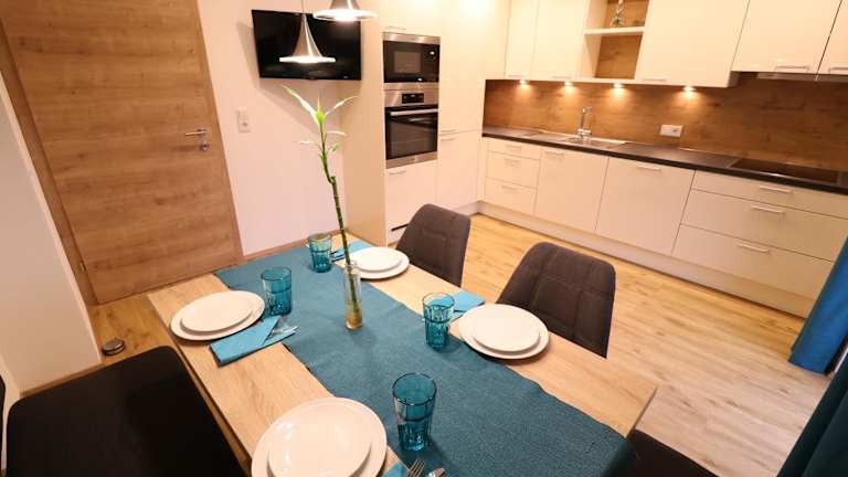 Die Zimmer im Apart Kreidl sind mit einem Balkon und Bergblick ausgestattet. Sie verfügen über einen Sitzbereich, einen Satelliten Flachbild-TV sowie eine voll ausgestattete Küche mit Kühlschrank, Geschirrspüler, Ofen, Mikrowelle und Herdplatte. Zudem sind Kaffeemaschine, Wasserkocher und ein eigenes Badezimmer mit Dusche und Haartrockner vorhanden.