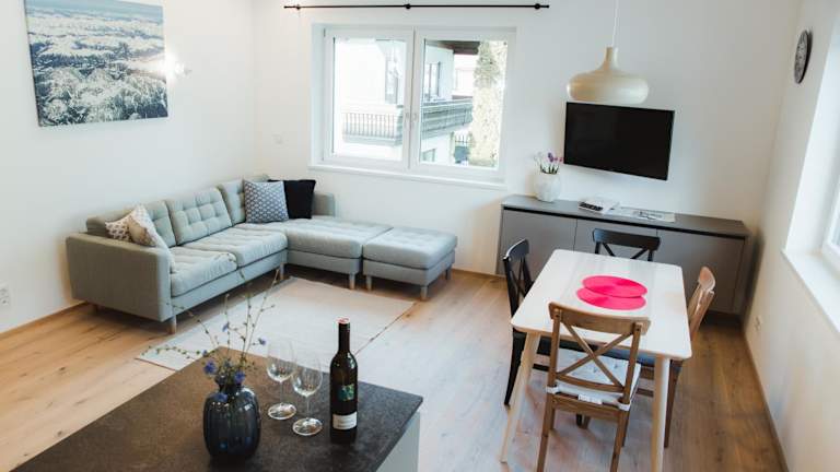 Die Ferienwohnung ist ausgestattet mit 2 Schlafzimmern, 1 Badezimmer, Bettwäsche, Handtüchern, einem Flachbild-TV, einer voll ausgestatteten Küche sowie einem Balkon, der einen herrlichen Ausblick auf die Berge ermöglicht.